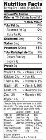 - provides 18% of the daily value for Potassium