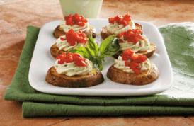 desired. Pipe or spoon about 2 teaspoons pesto mixture onto each potato; top with red